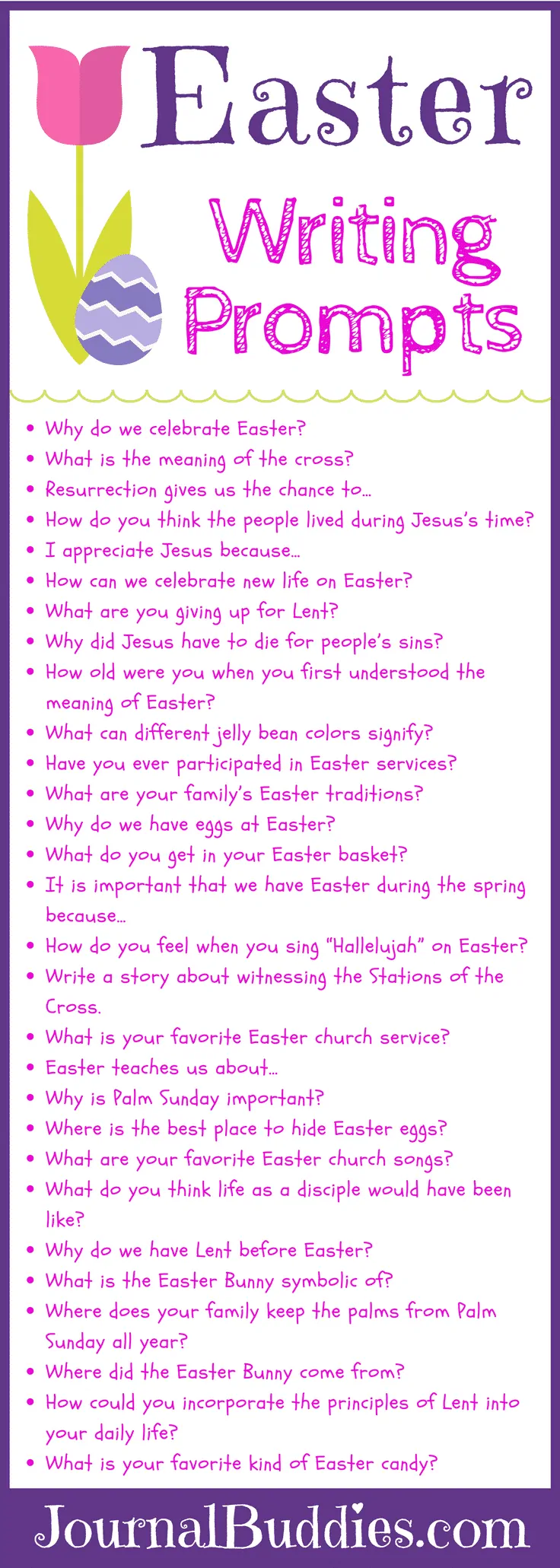Check out these supporting bbc teach videos below on the easter story Take a few minutes and check out all the printables we have specifically for this holiday. For most british children, easter means chocolate easter eggs. Students draw a picture and write a sentence or two about why they like easter. Check out our easter writing selection for the very best in unique or custom, handmade pieces from our shops. This easter writing prompt will get your child to think about easter traditions and then order his easter creative writing #5. Journal writing prompts for easter. thoughtco, aug. Each of the cursive writing worksheets has a cute easter theme and practice lines for children to spell their favorite holiday words like basket, chick. Easter is coming soon, so we've decided to bring out some writing prompts to spark the beginning of the easter season and, for most people, an activity to do over the holidays you may have from school. Preschool easter activity workbook kindergarten easter activity workbook first grade easter activity workbook second grade easter. Easter writing activity using easter props as inspiration. Creative writing scheme of work gcse. Two picture book suggestions, and a choice of three writing activities aligned to the common core.picture book: