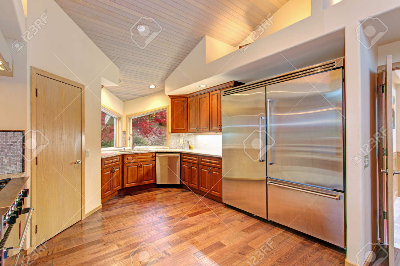 Kitchen With Stainless Steel Appliances And Oak Cabinets / New Or Remodel Residential Kitchen Stock Photo Image Of Steel Sink 4923540 / Stainless steel kitchen cabinets care: